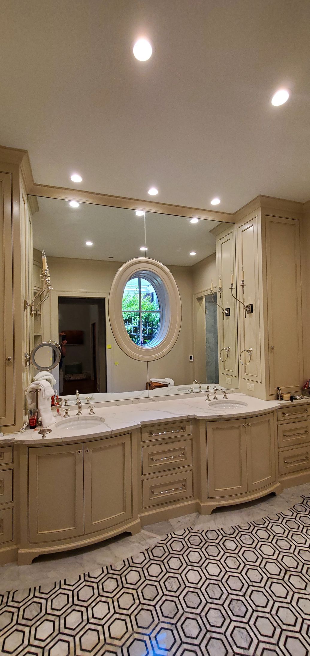 Specialty glass installations include custom mirrors, wine room enclosures, and curved glass applications.